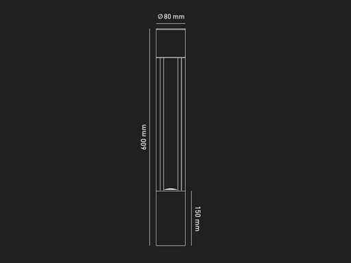 IP65 afdichting, afm. Ø 80 x 600mm, materiaal aluminum en gehard glas, schroeven kleur inox, bevestiging inclusief, GU10 fitting, bulb niet inbegrepen, geschikt voor buiten, een bulb invoer, met waterdicht IP 68 kabelverbinder voor max. 3x1.5mm² kabel, voltage 220-240V, max 11 watt, Staande buitenlamp, SKU 01082