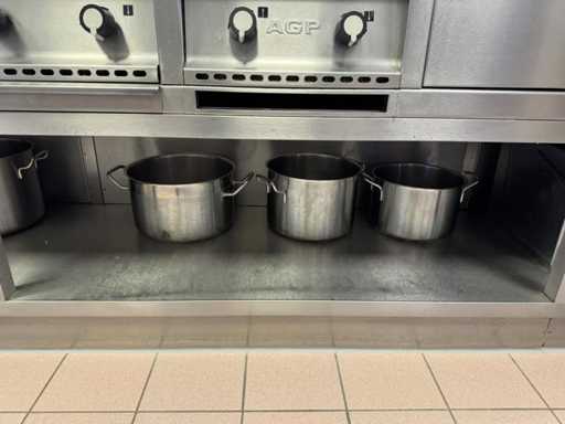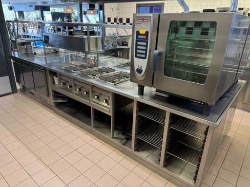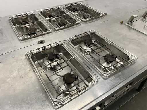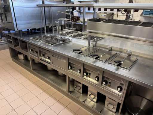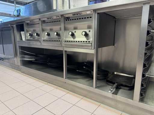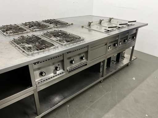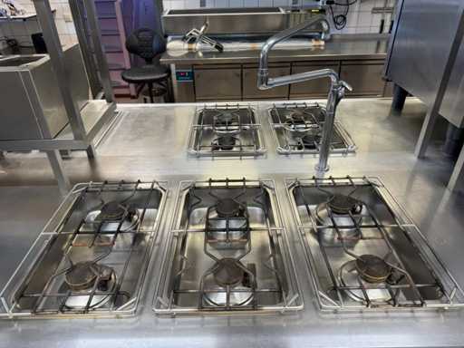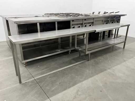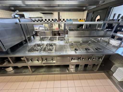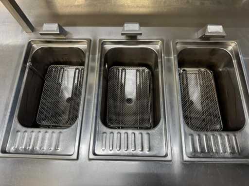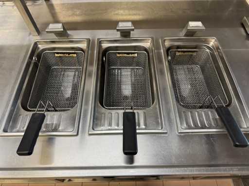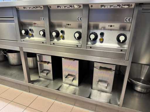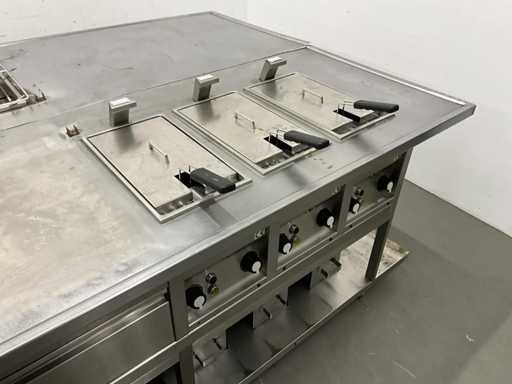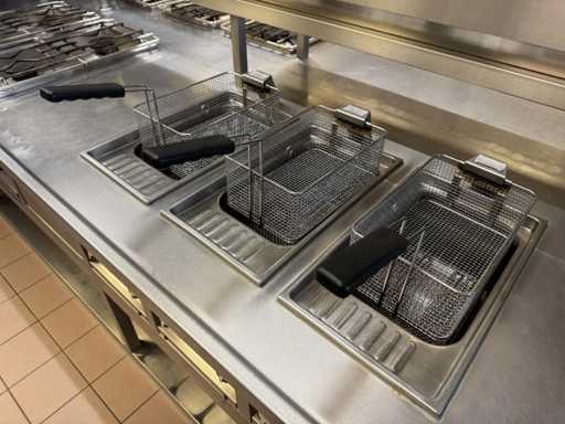 V.v. 10 gaspitten, 3 elektrische friteuses (incl. 1x nieuw verwarmingselement) en Etagere.