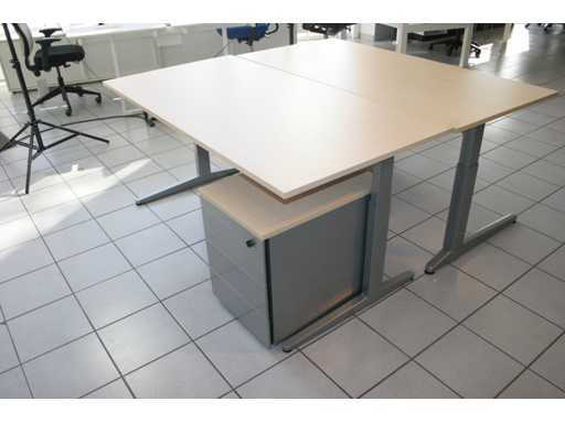 in hoogte verstelbaar (620 - 820 mm) onderstel in metaal kleur alu, werkblad in melamine kleur esdoorn, met bijpassend ladenblok, lichte gebruikssporen mogelijk
