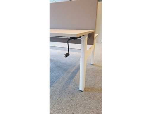 apart in hoogte verstelbaar (620 - 820 mm) onderstel kleur Wit voorzien van kabelgoot, werkbladen in melamine kleur lichte Eik, inclusief scheidingswand kleur antraciet, lichte gebruikssporen mogelijk