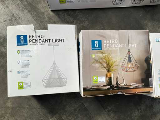 Waaronder 3 diverse hanglampen en 1x ceramische tafellamp