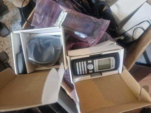 Lot de combinés Alcatel-Lucent OmniTouch 8118, téléphone sans fil professionnel fonctionnant via le réseau WLAN (Wi-Fi). Neufs et occasion avec batteries, chargeurs ,docking stations et housses de protection.