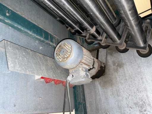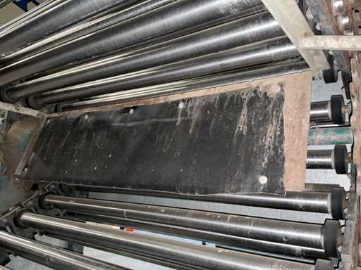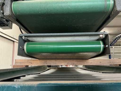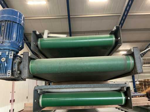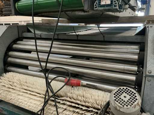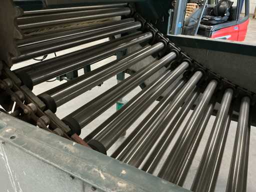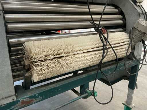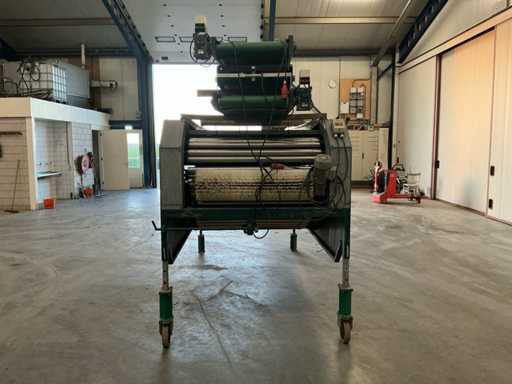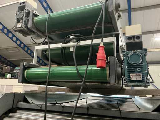 Lopers breedte (rollen) 1200mm; doorlaat variabel instelbaar 6mm tot 70mm; afvoerbanden 600mm breed; 3x 3M afvoerbanden; 6 standaarden voor de rollen; 220v frequentie regeling; 380V voor de afvoerbanden