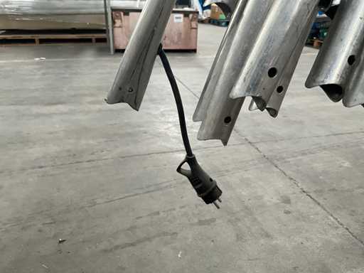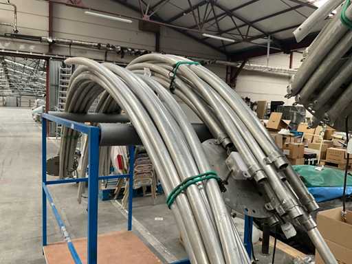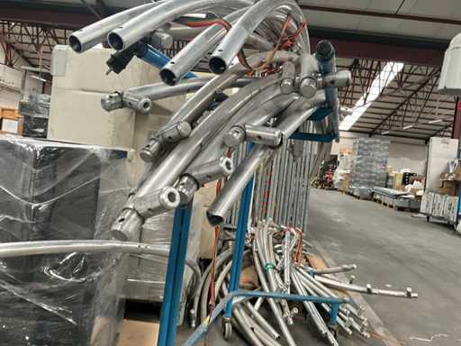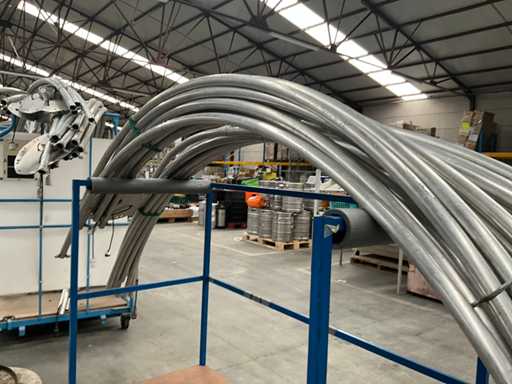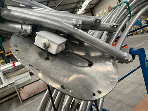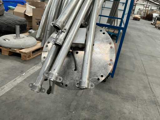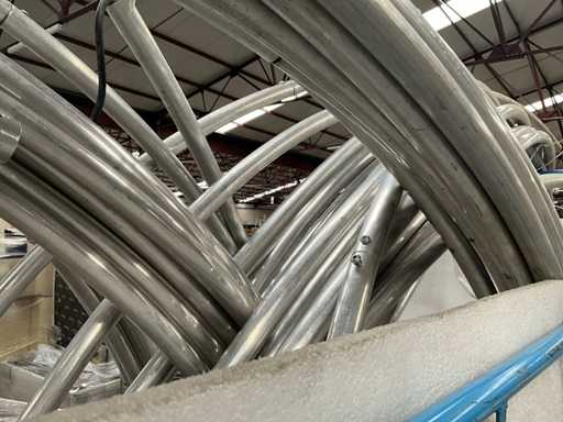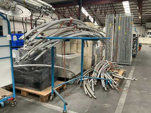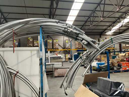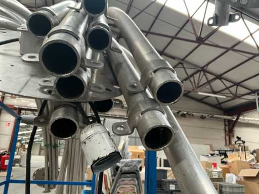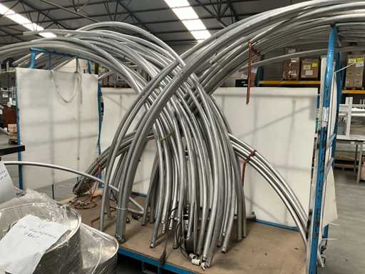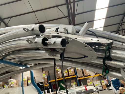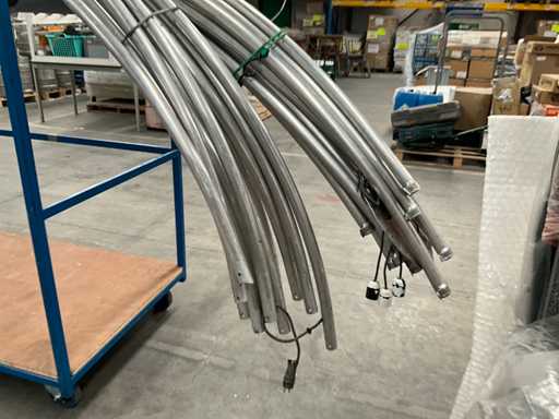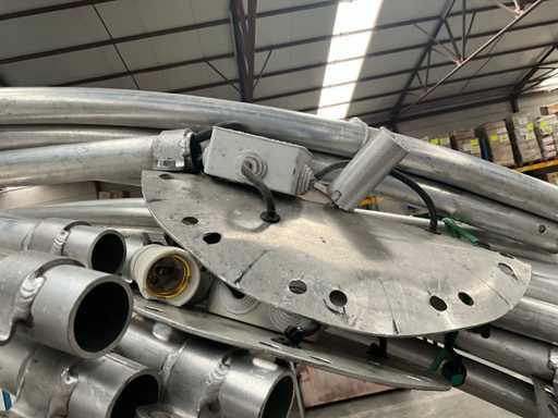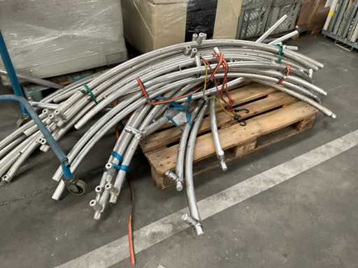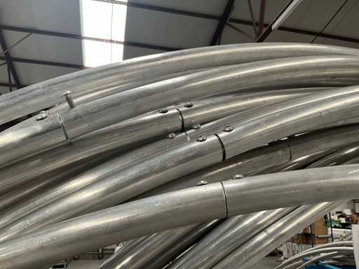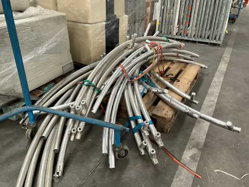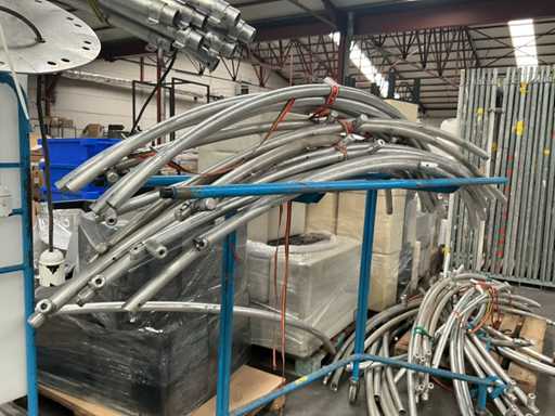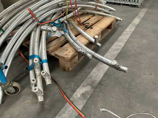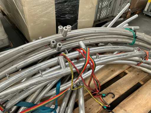 Diverse truss-elementen waaronder van circa 400 (2x 200) 2-delig, 360 (1 geheel), 200 cm lang in gebogen vorm, diameter 3,5 cm, compatibel en aanbouw mogelijkheid van deze trussvormen met elkaar en waaronder sommigen ook voorzien zijn van elektriciteitsbekabeling voor verlichting met schakelaar waarvan enkele socketten beschadigd.