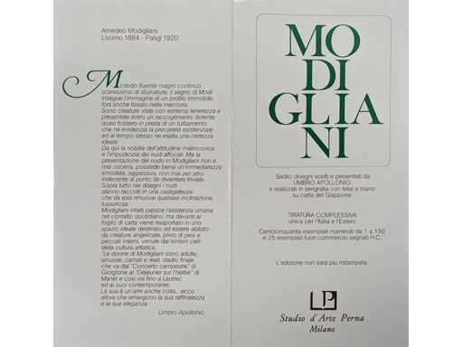 Het werk is (oorspronkelijk) aangebracht op een dik kunstpapier (onzichtbaar als het eenmaal onder een mat is ingelijst). Gelimiteerde en genummerde oplage van 150 stuks. Gesigneerd in de plaat met certificaat van uitgave en notariële documenten (waaruit de oorsprong en vernietiging van de lithografische stenen blijkt). Herkomst: Afstammeling van de uitgever Valentino Perna Lithographic Edition door Studio d'Arte Perna (Milaan) in 1981. Op mooi Japans papier