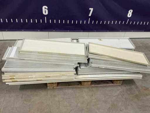 Bestaande uit circa 75 legborden(950x300mm) en 11 staanders(300x2000mm), op en inclusief 1 pallet