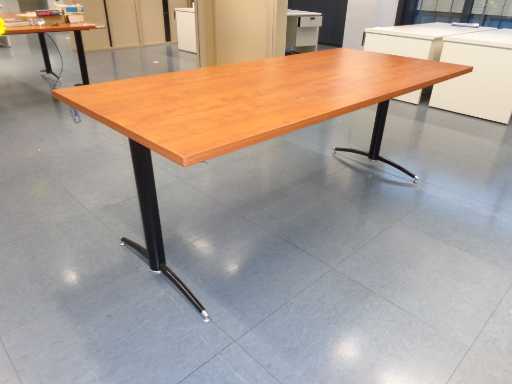 Vintage design vergadertafel Artifort, onderstel in metaal kleur zwart voorzien accenten in chroom, blad in melamine kleur kers, afm. 2000 x 900 x 740 mm ( l x d x h), mooie representatieve vergadertafel, mooie vintage staat