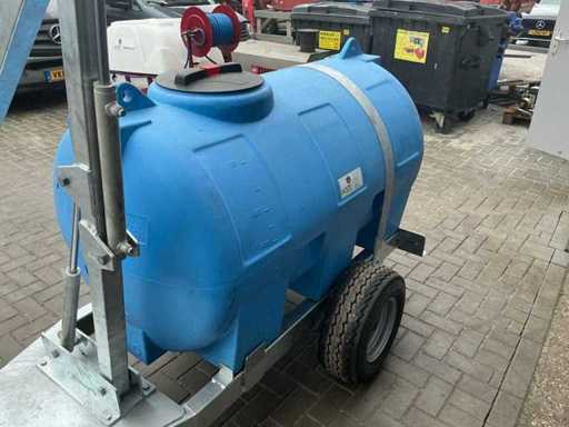 Voorzien van: tank 750 ltr, polyethyleen met hoge dichtheid, bestand tegen chemische stoffen, bestand tegen temperatuurschommelingen (-40°C tot +60°C), hoge weerstand tegen UV-straling, aanhangwagen koppeling k50, neuswiel, volledig gegalvaniseerd chassis, luchtbanden, zij-arm voorzien van 2 hydraulische cilinders, hijsogen aan tank.