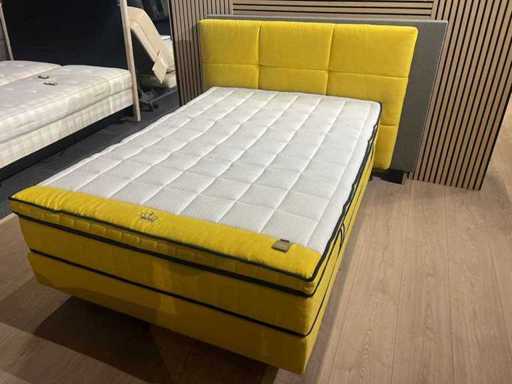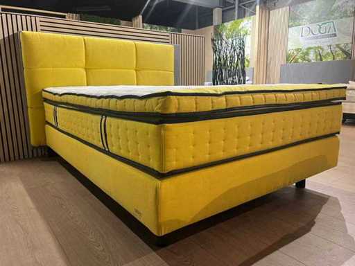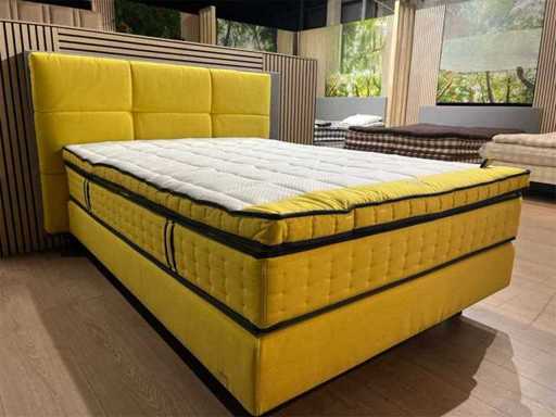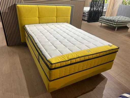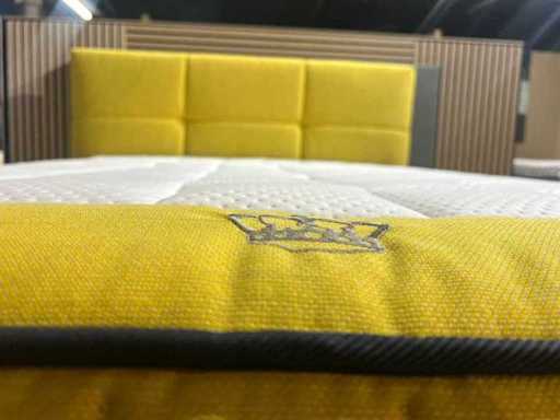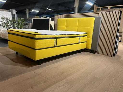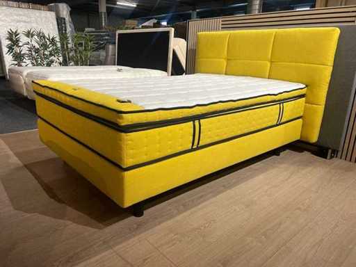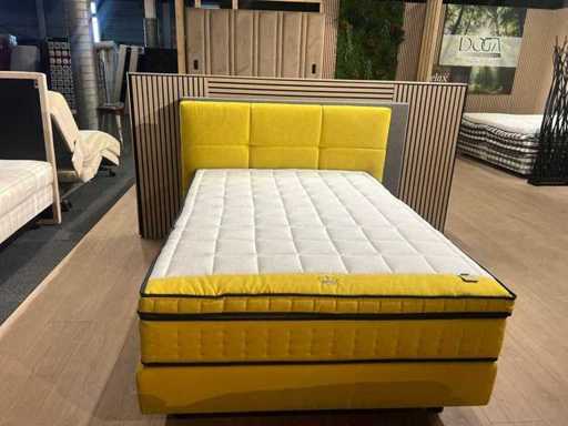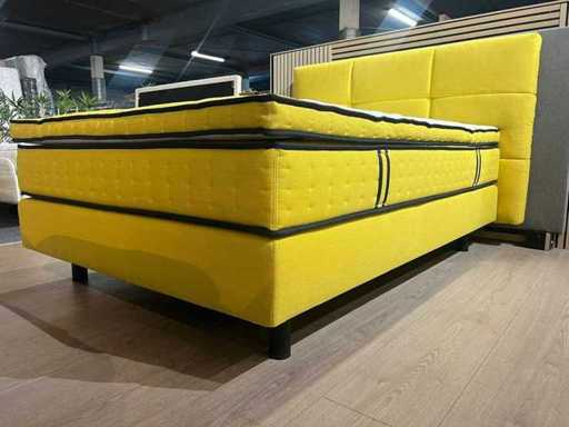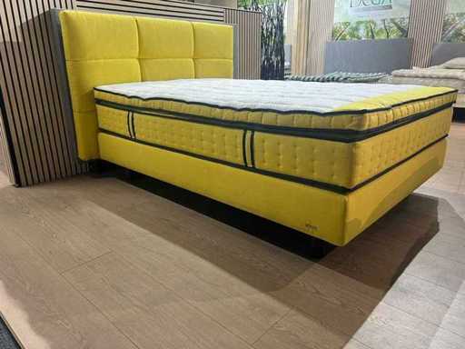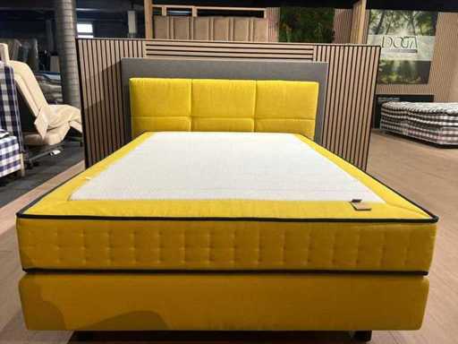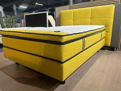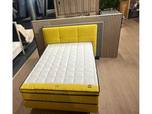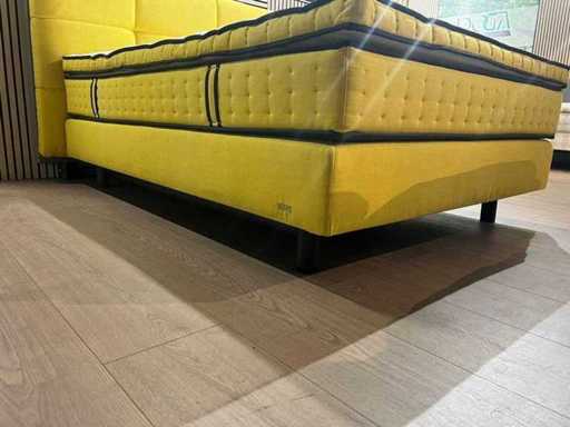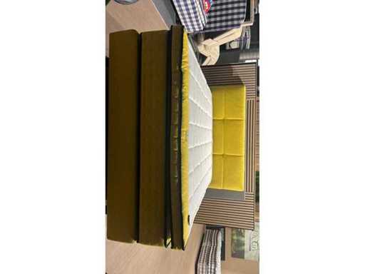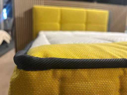 Uitgevoerd in een opvallende gele stof met luxe afgewerkt hoofdbord – een echte blikvanger voor iedere slaapkamer.