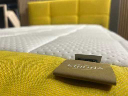 Stijlvolle Auping Kiruna boxspring in moderne uitvoering. Deze hoogwaardige boxspring staat bekend om zijn uitstekende ondersteuning dankzij de unieke Auping spiraalbodem en comfortabele pocketveringmatras.