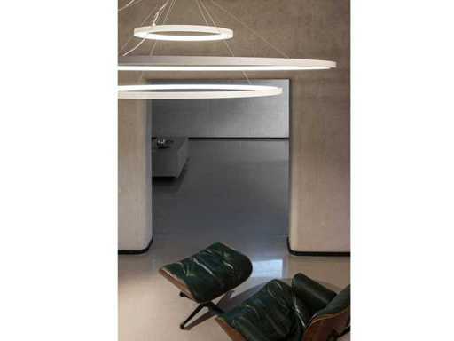 De bijzondere Aurora pendel lamp geeft een unieke uitstraling en past in meerdere ruimten zoals in de woonkamer, de keuken, in slaapkamers, maar daarnaast ook in ontvangstuimten, werkkamers of in de showroom. Deze modern vormgegeven hanglamp beschikt over 3 x afzonderlijk draai- en kantelbare ringen welke allemaal voorzien zijn van een warm witte led lichtbron. Dankzij de verstelbare ophangset is het mogelijk om alle 3 ringen afzonderlijk van elkaar te kantelen of te verstellen. Zo kan de pendellamp in iedere ruimte net even anders zijn. Aantal lichtbronnen: 3. Afmeting ca.: 60/40/20 cm. Kardanisch verstelbaar: Ja. Lichtbundel ca 110 graden. Lichtkleur: Warm wit. Lichtbron: Led. Aansluiting: 230 Volt. Kleur: Wit. Afwerking: Mat.