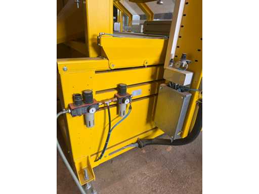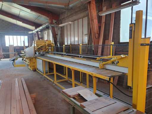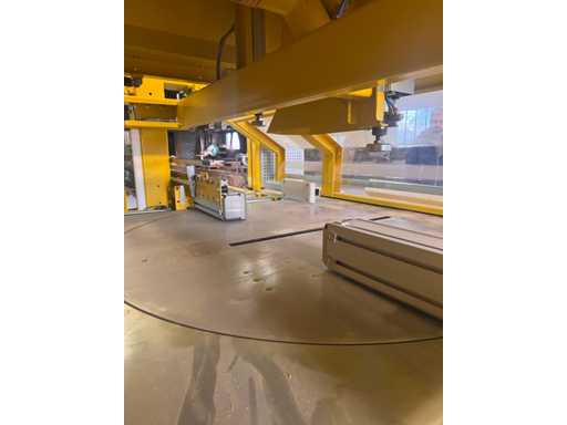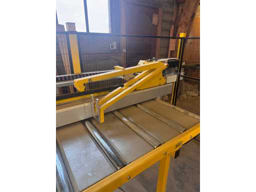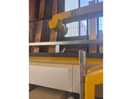 Apparatuur: laserindicator, aluminium stops 120x120 (3 m + 5 m), L/R roltransportbanden (3-4 m), veiligheidslichtgordijn, PVC-afdekking, 320 mm afvoertafels, gaaspanelen, lineaire steun 1660 mm