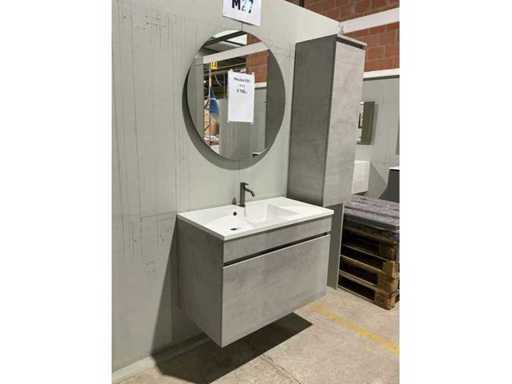 Compleet met ronde spiegel met diameter 80cm + hangkast met afmetingen ca. 35 x 36 x 115cm