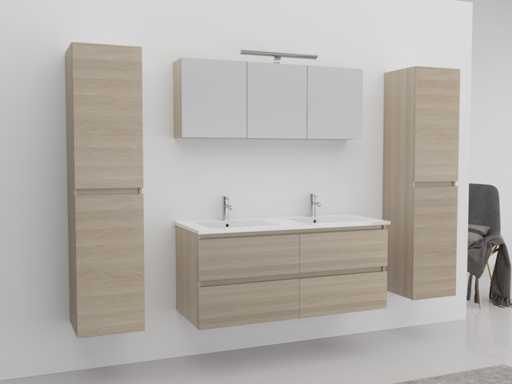 Type: HAVIKLUXWM-2-120-H074. Model: 2-persoons badkamermeubel 120 cm - hoogglans wit met witte wasbak. Afmeting: 2-persoons set: 1 * Wastafelmeubel - 1200x455x520mm, 1 * Dubbele wasbak – 1200x460x160mm (rand 2 cm), 2 * Zijkasten - 1500x350x350mm, 1 * Spiegelkast - 1200x450x180mm. Voorzien van: Kranen inclusief pop-up drain – 4 lades - Softclose systeem op deurtjes en lades - Giethars wasbakken – LED verlichting boven de spiegel – Spiegelkast met 3 deurtjes en 2 planken - Voorgemonteerde zijkasten en wastafelmeubel.