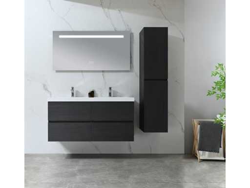 Type: 9015. Afmeting: 3-delige set: 1 * Wastafelmeubel - 1200x450x600mm, 1 * Zijkast - 1500x350x350mm, 1 * Spiegel- 1200x600mm. Voorzien van: Kranen inclusief pop-up afvoer – 4 stevige metalen lades - Softclose lade systeem - LED spiegel met anti-fog systeem - Voorgemonteerde zijkast en wastafelmeubel.