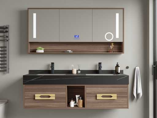 Type: MBY-315. Afmeting: 2-persoons set: 1 * Wastafelmeubel - 1500x550x550mm, 1 * Spiegel - ca. 1500x700mm. Voorzien van: Softclose lade systeem: 4 lades - Kranen inclusief pop-up drain - Spiegel met touchscreen LED-verlichting en anti-fog technologie - Voorgemonteerd wastafelmeubel.