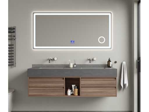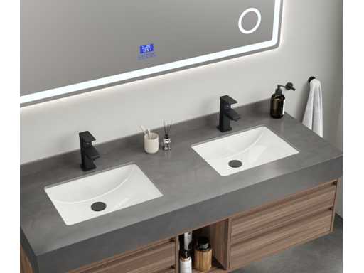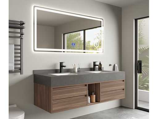 Type: MBY-415. Afmeting: 2-persoons set: 1 * Wastafelmeubel - 1500x550x550mm, 1 * Spiegel - ca. 1500x700mm. Voorzien van: Softclose lade systeem: 4 lades - Kranen inclusief pop-up drain - Spiegel met touchscreen LED-verlichting en anti-fog technologie - Voorgemonteerd wastafelmeubel.
