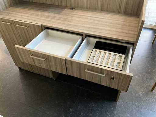 Baliemeubel in zeer nette staat. Zoals op foto te zien, voorzien van 2 schuiven en een kastje. Op maat gemaakt door het bedrijf JJMaes.