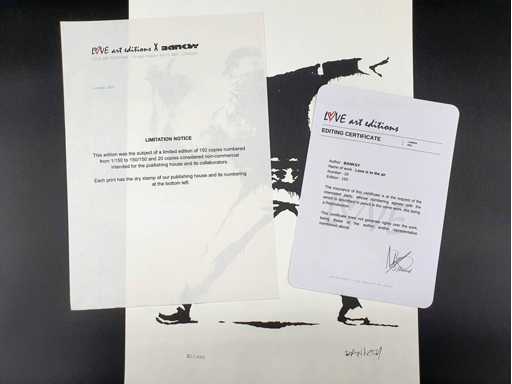 Banksy (geboren in 1974), gebaseerd op - Er hangt liefde in de lucht