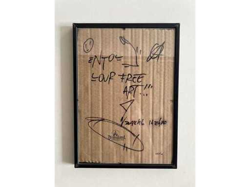 Ingekaderd karton dat waarschijnlijk uit het park komt van Dismaland (in 2015)