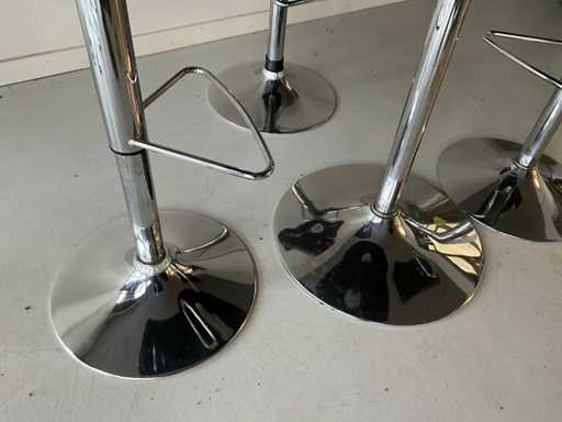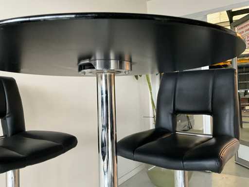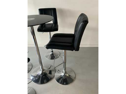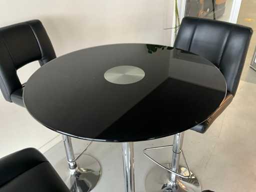 Tafel met glazen blad diameter 65cm. Hoogte 110cm.