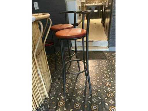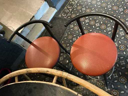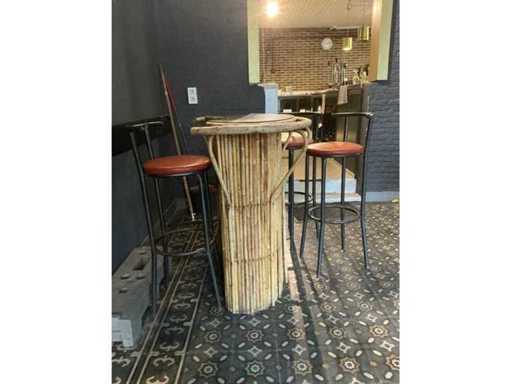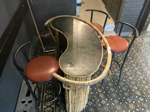 Met afmeting circa 120 x 66 x 105 cm compleet met 3 barkrukken voorzien van metalen onderstel en rode lederlook zit