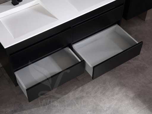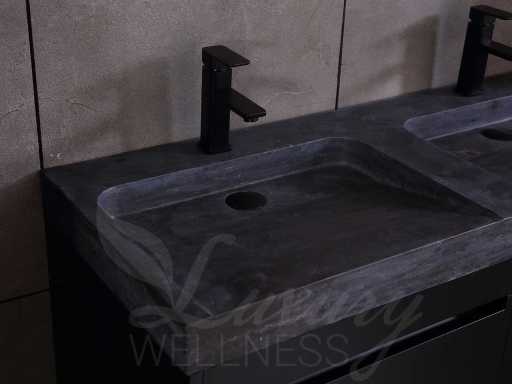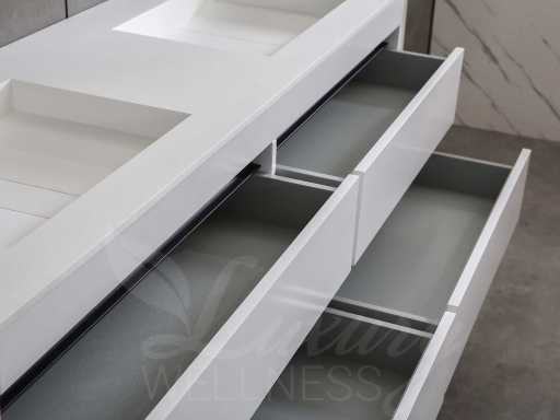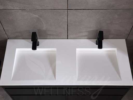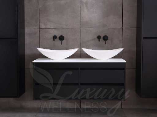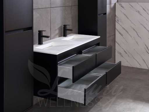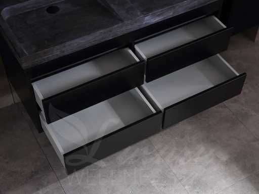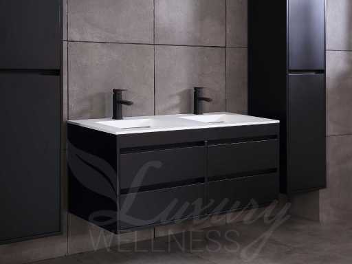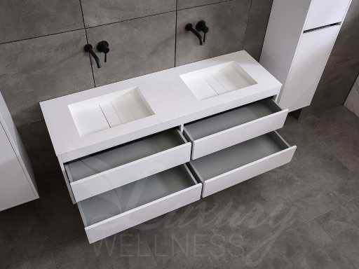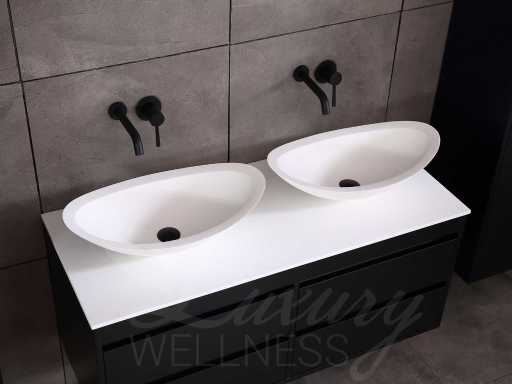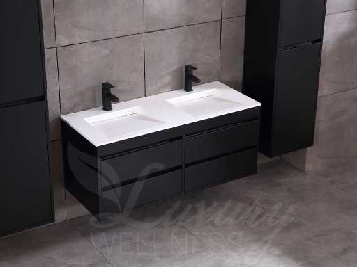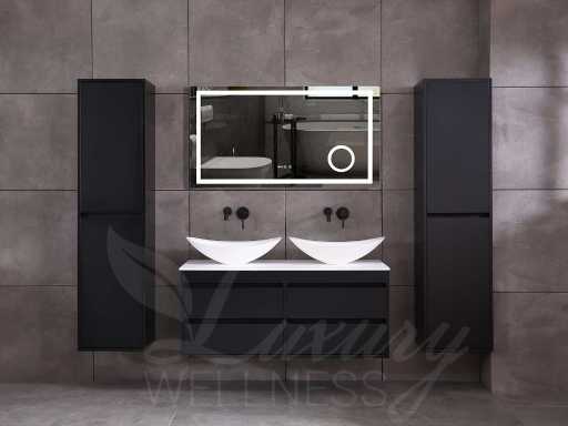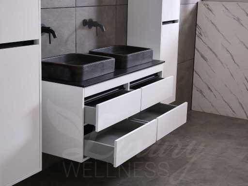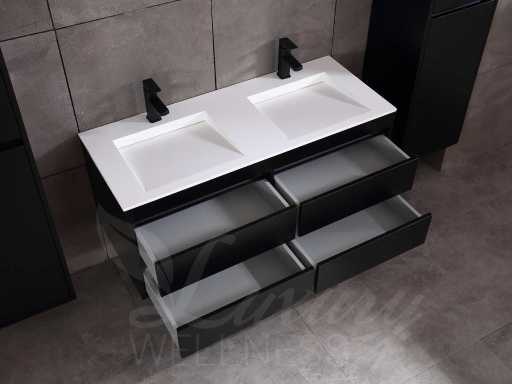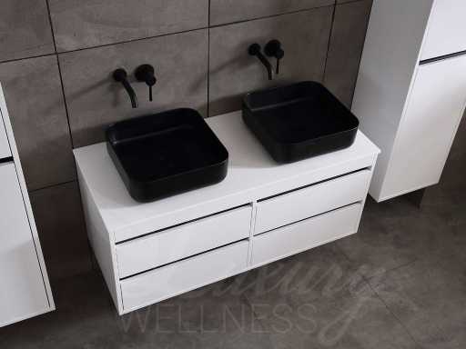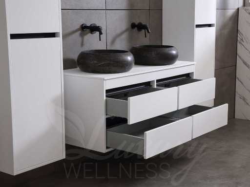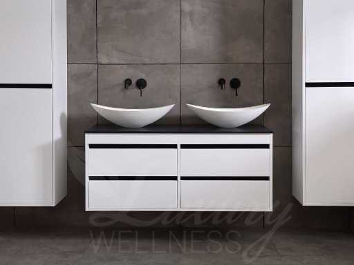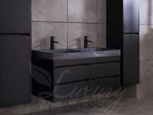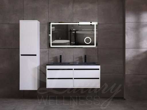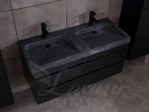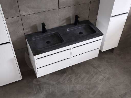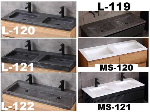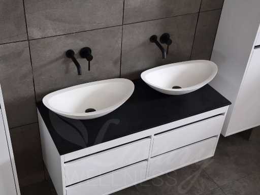 badkamermeubel 2-persoons 120cm (2 kleuren mogelijk) met (hangkast) en natuursteen of solid surface wastafel(s)