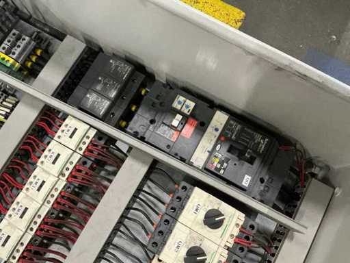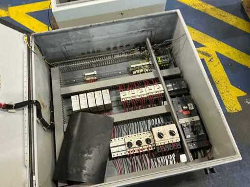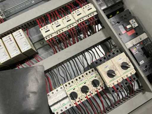 inhoud bestaande uit Apex touchpanel, contactors, trafo, schakelaats, relais, Sitop power supply….