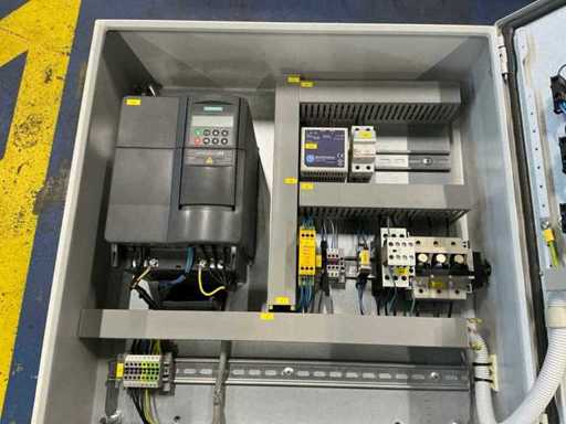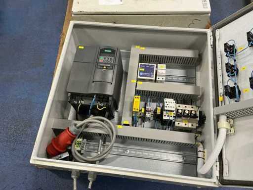 inhoud bestaande uit 2x Siemens Micromaster frequentieregelaar, relais, contactors, ….