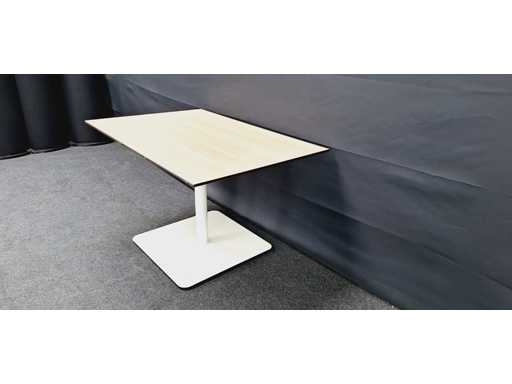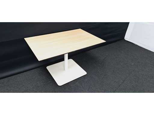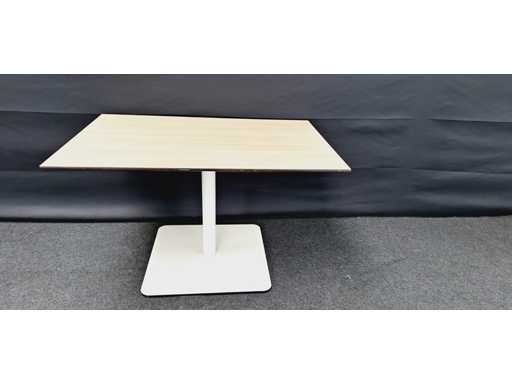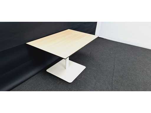 centrale verzwaarde voet in metaal kleur wit, werkblad in volkern kleur lichte eik, toonzaalmodel, in zeer goede staat