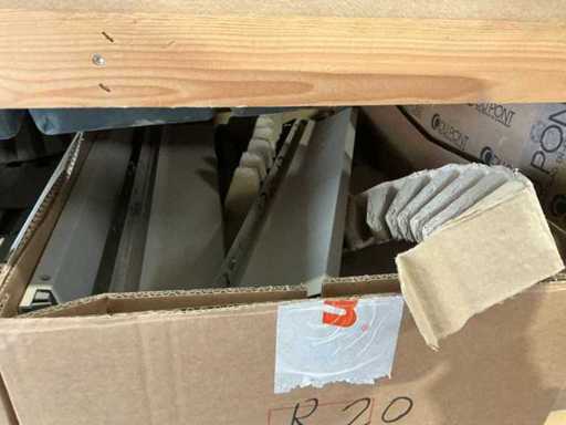 Waaronder schuifgeleiderplaatjes, afdekkappen, punthaken, back fixings, scharnieren, frontbevestigingen, ophangsystemen,.., compleet met rek