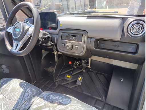 voorzien van: documentatie (COC voor kenteken inschrijving), 4.00-10 banden afmetingen: 2483x1320x1626mm, max snelheid 45 km/h, 3.00Kw motor, automaat versnellingsbak, actieradius: max 70 kilometer, digitaal display, 2-persoons cabine, verlichting, ongebruikt