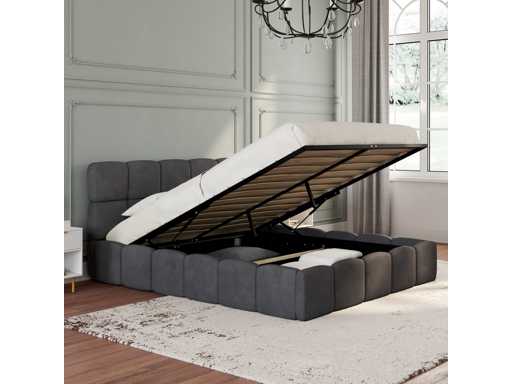 Borstbed 140x190 - grijs fluweel met bedbodem en hoofdeinde
