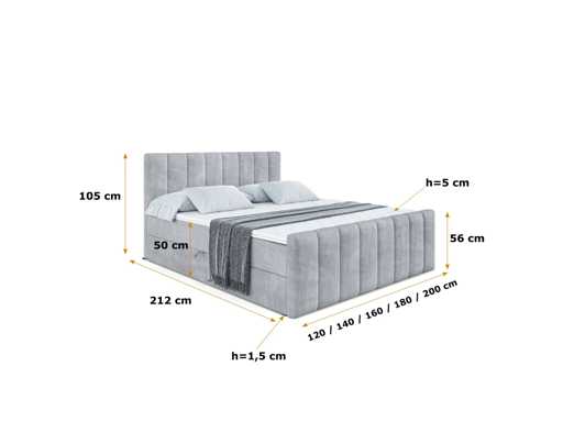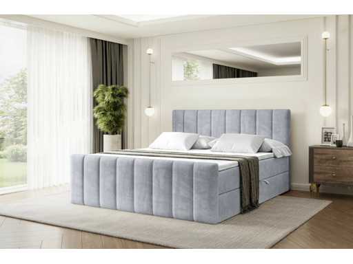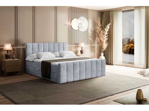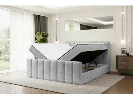 Box spring bed 140x200 cm - borst - matras - matras topper - grijs fluweel