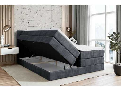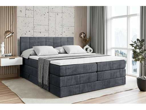 Box spring bed 180x200 cm - borst - matras - matras topper - donkergrijs fluweel