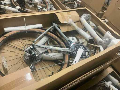De meeste fietsen zitten nog in verpakking en zijn zelf te monteren. Enkele fietsen zijn reeds uitgepakt voor de foto’s. Demo fietsen in showroom zijn zonder verpakking. De verpakking dient meegenomen te worden door de koper.