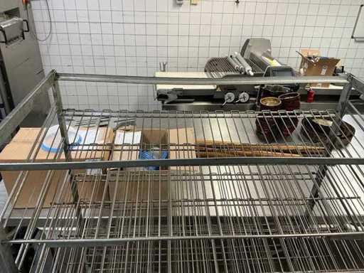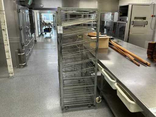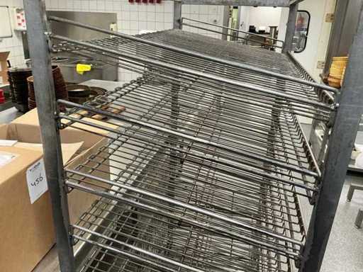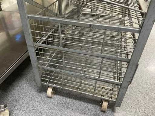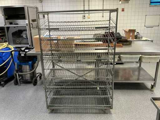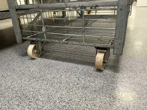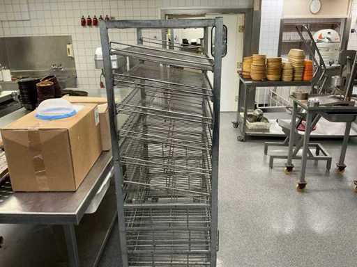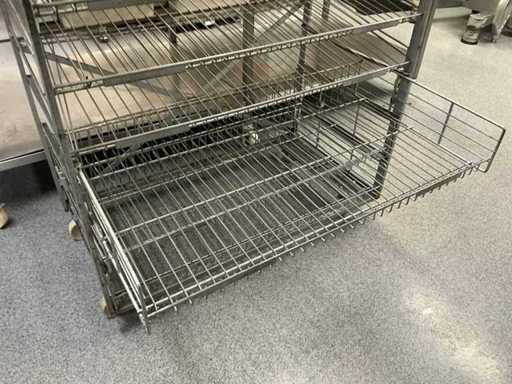 Uit metaal; voorzien van 9 leggers; voorzien van 4 zwenkwielen; onderste 3 leggers uitschuifbaar