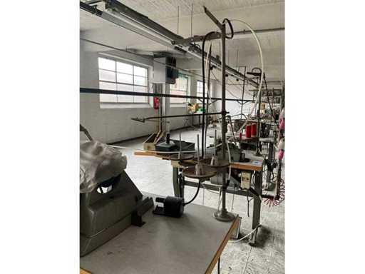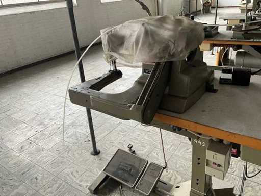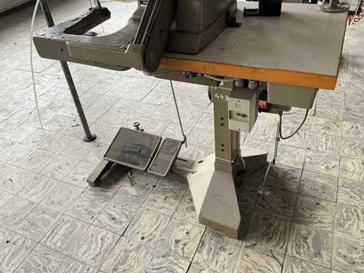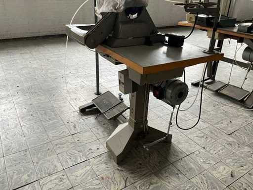 Op metalen onderstel/tafel en voorzien van voetpedaal bediening en motor.