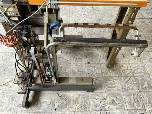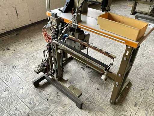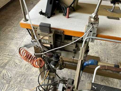 Op metalen onderstel/tafel en voorzien van voetpedaal bediening en motor.