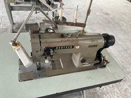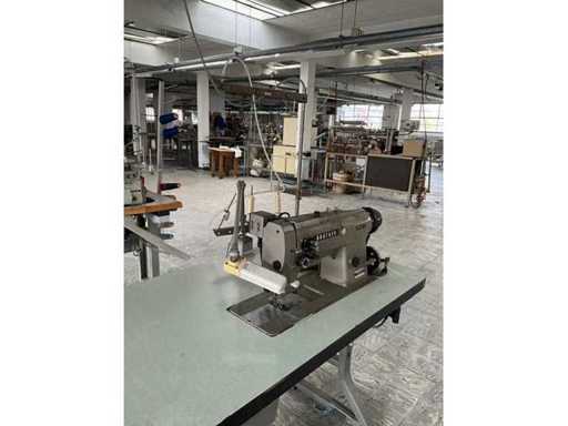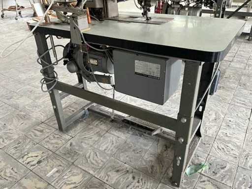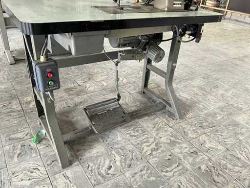 Op metalen onderstel/tafel en voorzien van voetpedaal bediening en motor.