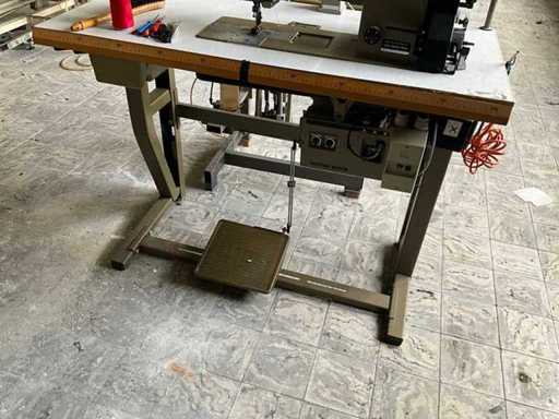 Op metalen onderstel/tafel en voorzien van voetpedaal bediening en motor.