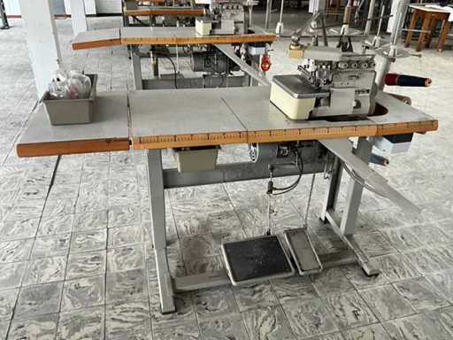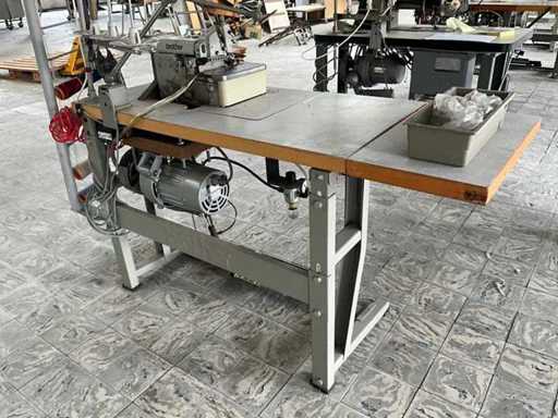 Op metalen onderstel/tafel en voorzien van voetpedaal bediening en motor.
