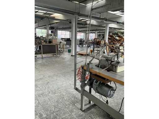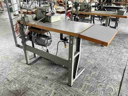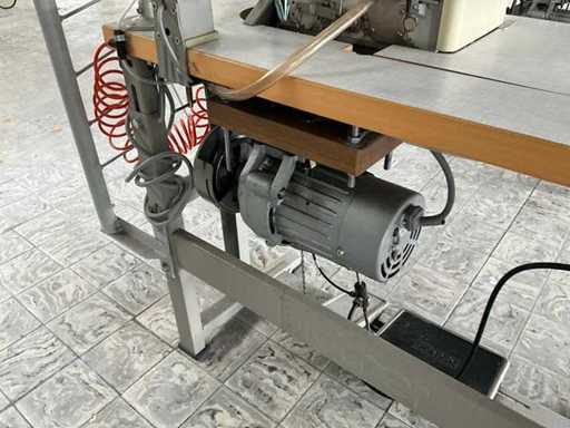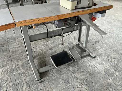 Op metalen onderstel/tafel en voorzien van voetpedaal bediening en motor.