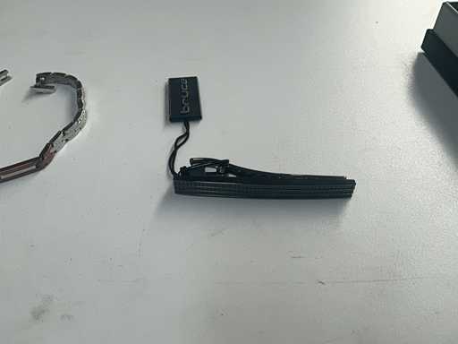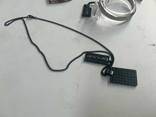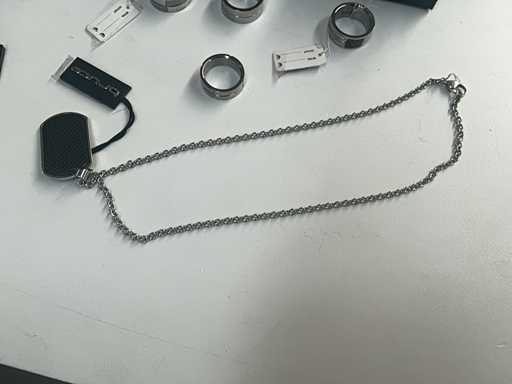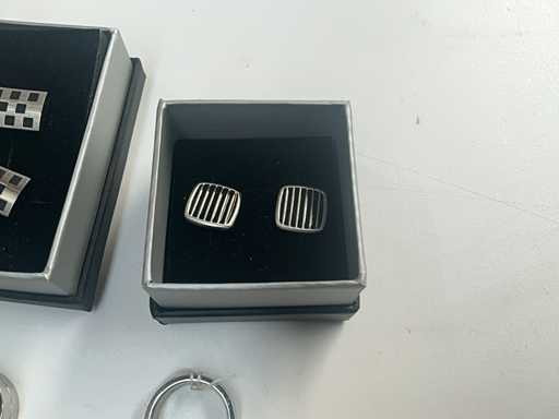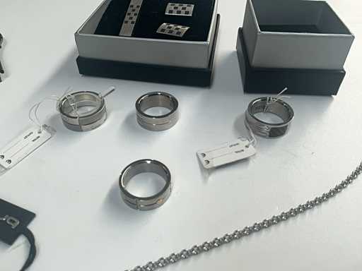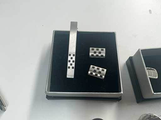Bestaande uit: 2 armbanden, 2 dasspelden, 4 ringen, 4 manchetknopen, 2 kettingen met hanger