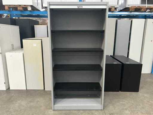 Hoge horizontale roldeurkast voorzien van 4 leggers, codeslot (geen draaiknop aanwezig)