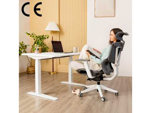 INDIVIDUEEL VERSTELBARE 2D HOOFDSTEUN: De hoofdsteun van deze bureaustoel kan in hoogte en hoek worden aangepast om de druk op je nek en hoofd te verminderen en je houding te verbeteren.