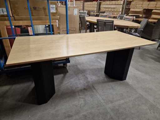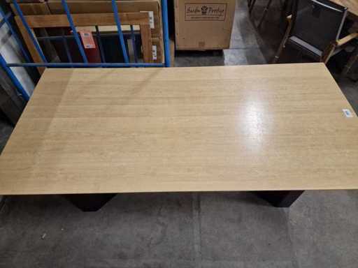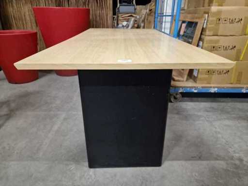 Bureautafel met Blad in Lichte Eik Laminaat 180 x 88cm met Houten Zuilpoten Zwart - Gebruikte Staat