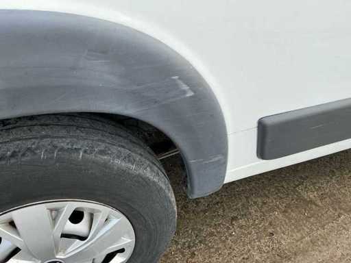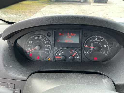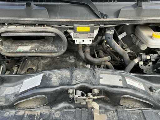 Het voertuig vertoont gebruikssporen en lichte beschadigingen aan de carrosserie, evenals algemene vervuiling, passend bij normaal professioneel gebruik. Binnenin is de cabine praktisch ingericht met standaard comfortvoorzieningen.