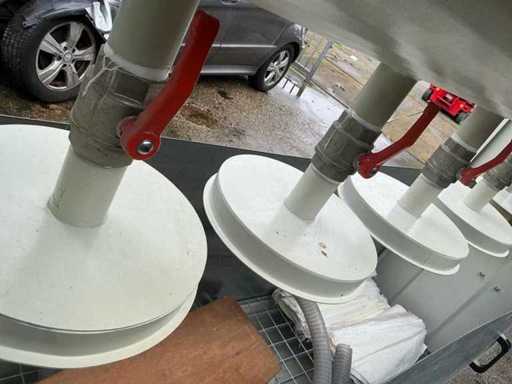 Het slib gaat in filterzakken (die witte zakken die je ziet)