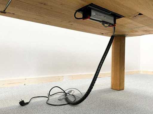 - Opgelet: Tafels komen steeds ZONDER elektrificatie en kabelage tenzij uitdrukkelijk anders vermeld in de omschrijving. Fotos met eventuele stekkerdozen, kabelage e.d. zijn zuiver ter illustratie van de mogelijkheden